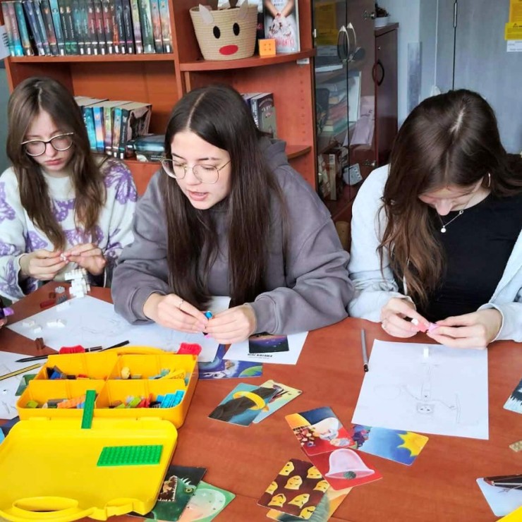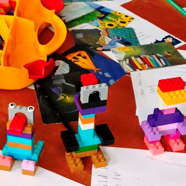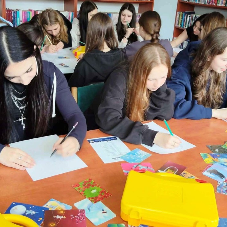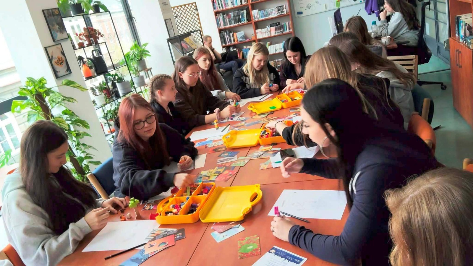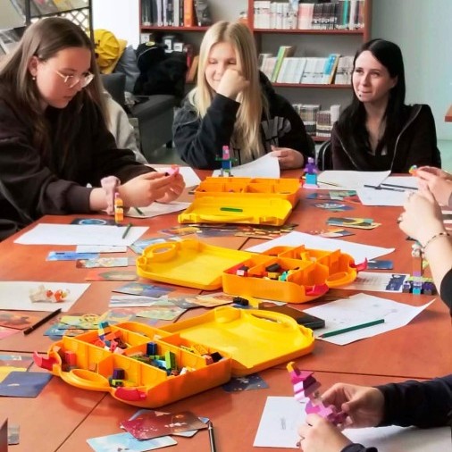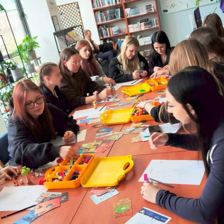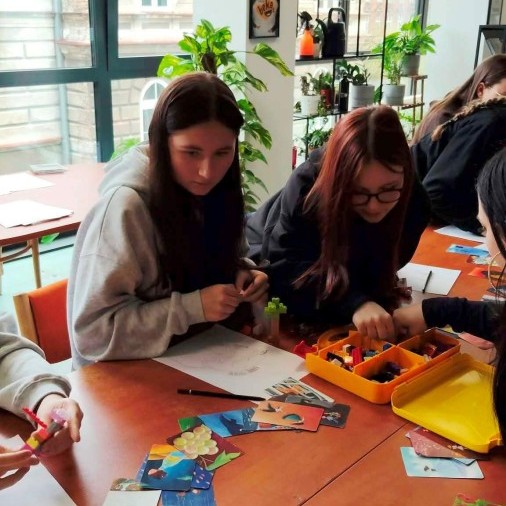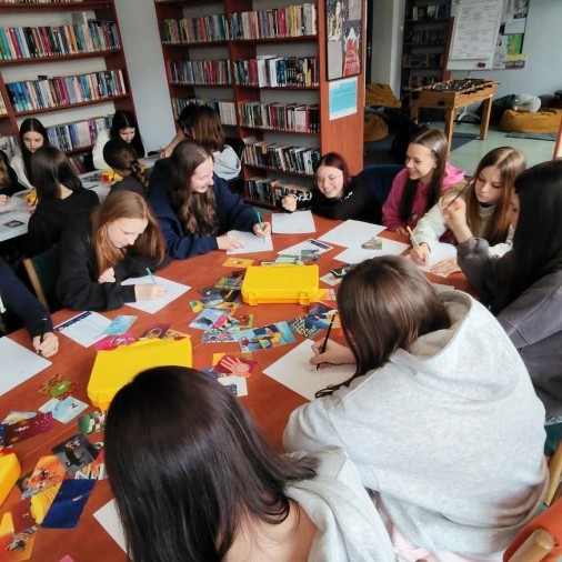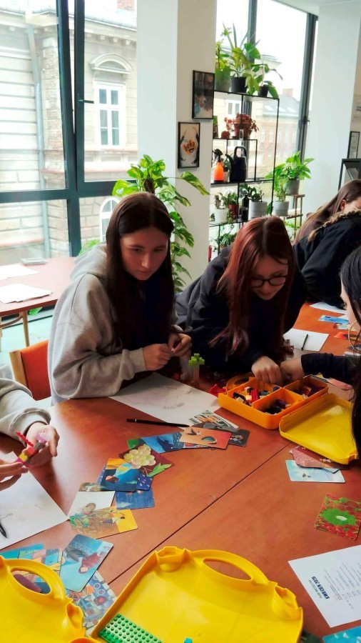 Zajęcia prowadzono z wykorzystaniem kart Dixit, kostek story cubes i klocków lego. Uczennice pracując na udostępnionych narzędziach opracowały własne historie i wymyślały własnych bohaterów. Powstały ciekawe prace plastyczne, odzwierciedlające bogatą wyobraźnię młodzieży. Forma zajęć pozwala na pracę nad konstruowaniem przemyślanych wypowiedzi ustnych, ćwiczenie w formułowaniu jasnego przekazu swoich pomysłów i wizji – dla uczestniczek zajęć była to więc nieoceniona pomoc w rozwijaniu umiejętności językowych.