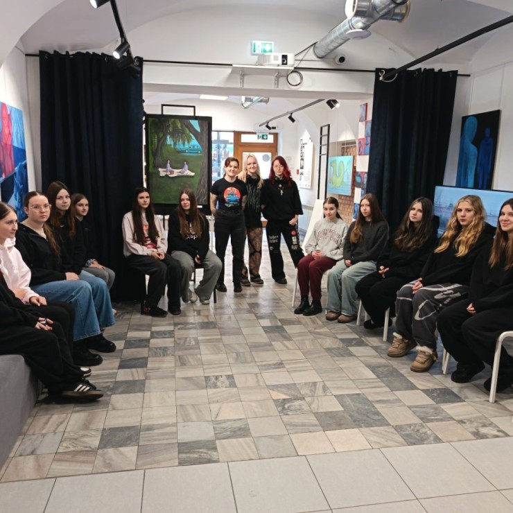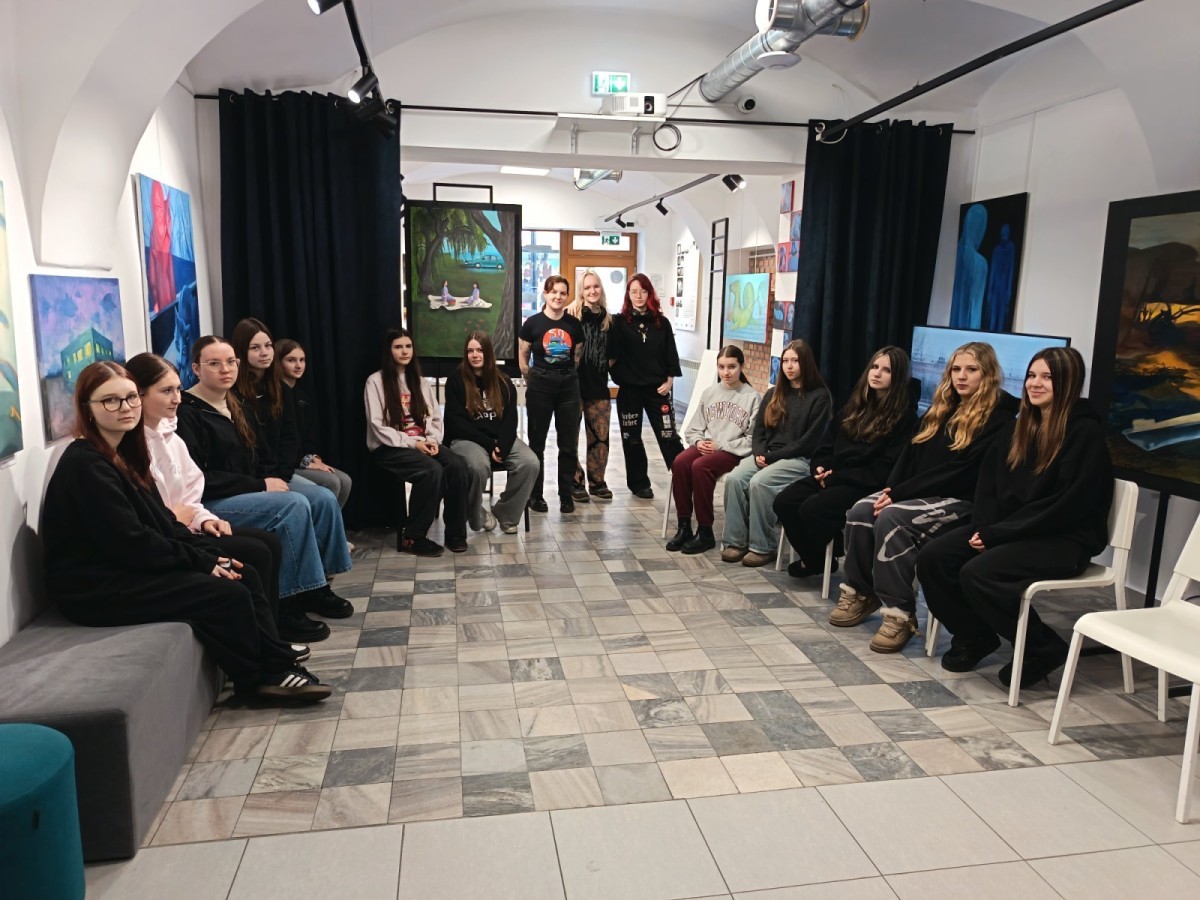 10 lutego 2026 r. uczennice z klasy 1TŻ wraz z opiekunkami udały się do Punktu 11 na warsztaty kreatywności w ramach wystawy malarstwa pt. „Nie-obojętność”, na którą składały się prace osób studiujących w Pracowni Kreatywnego Myślenia w Obrazowaniu Malarskim na Akademii Sztuk Pięknych w Katowicach.