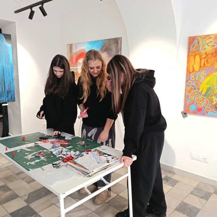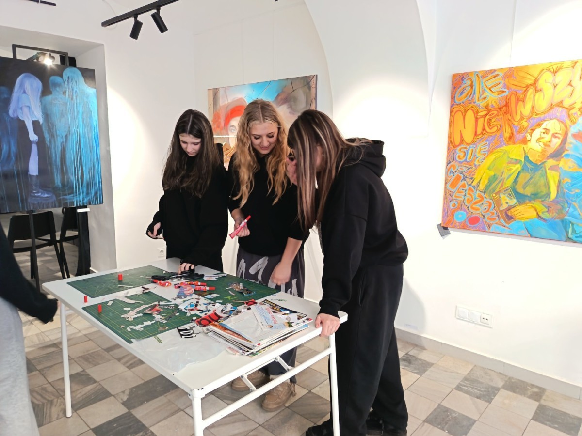 Obcowanie ze sztuką obudziły w młodzieży refleksje na temat tego, co przemija i co warto ocalić. Integrację zespołu klasowego zwieńczyła rozmowa z lokalnym artystą i wspólne tworzenie planszy.