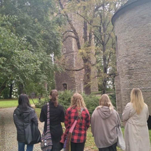 Pogoda sprzyjała, więc uczniowie zdobyli J Wzgórze Zamkowe z najstarszymi zabytkami Cieszyna – XI-wieczną Rotundą św. Mikołaja (rewers banknotu 20-złotowego!), Wieżą Piastowską, Zamkiem – siedzibą Instytutu Projektowania dla Wszystkich. Wycieczka zakończyła się w Cafe Muzeum – dawnej siedzibie biblioteki Szersznika (a jeszcze wcześniej w tym miejscu mieściły się stajnie królewskie!), w pobliżu najstarszego muzeum w Europie – Muzeum Śląska Cieszyńskiego, którego zbiory zaintrygowały uczestników wycieczki, więc obiecali sobie, że jeszcze wrócą do Cieszyna :)