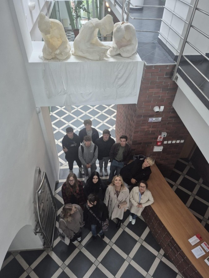W ramach realizacji Narodowego Programu Rozwoju Czytelnictwa w ostatni piątek (26.09.2025) klasa 4TUK pod opieką nauczycieli, pani Sylwii Pietrzak-Szpak i Iwony Szymik wybrała się na wycieczkę do Książnicy Cieszyńskiej. Młodzież poznała zabytkową bibliotekę Leopolda Jana Szersznika, zwiedziła gmach Książnicy i wystawę pt. „KRÓLEWSKI SZCZEP PIASTOWY. 1000-lecie koronacji Bolesława Chrobrego”, zawierającą cenne eksponaty z kolekcji Szersznika.